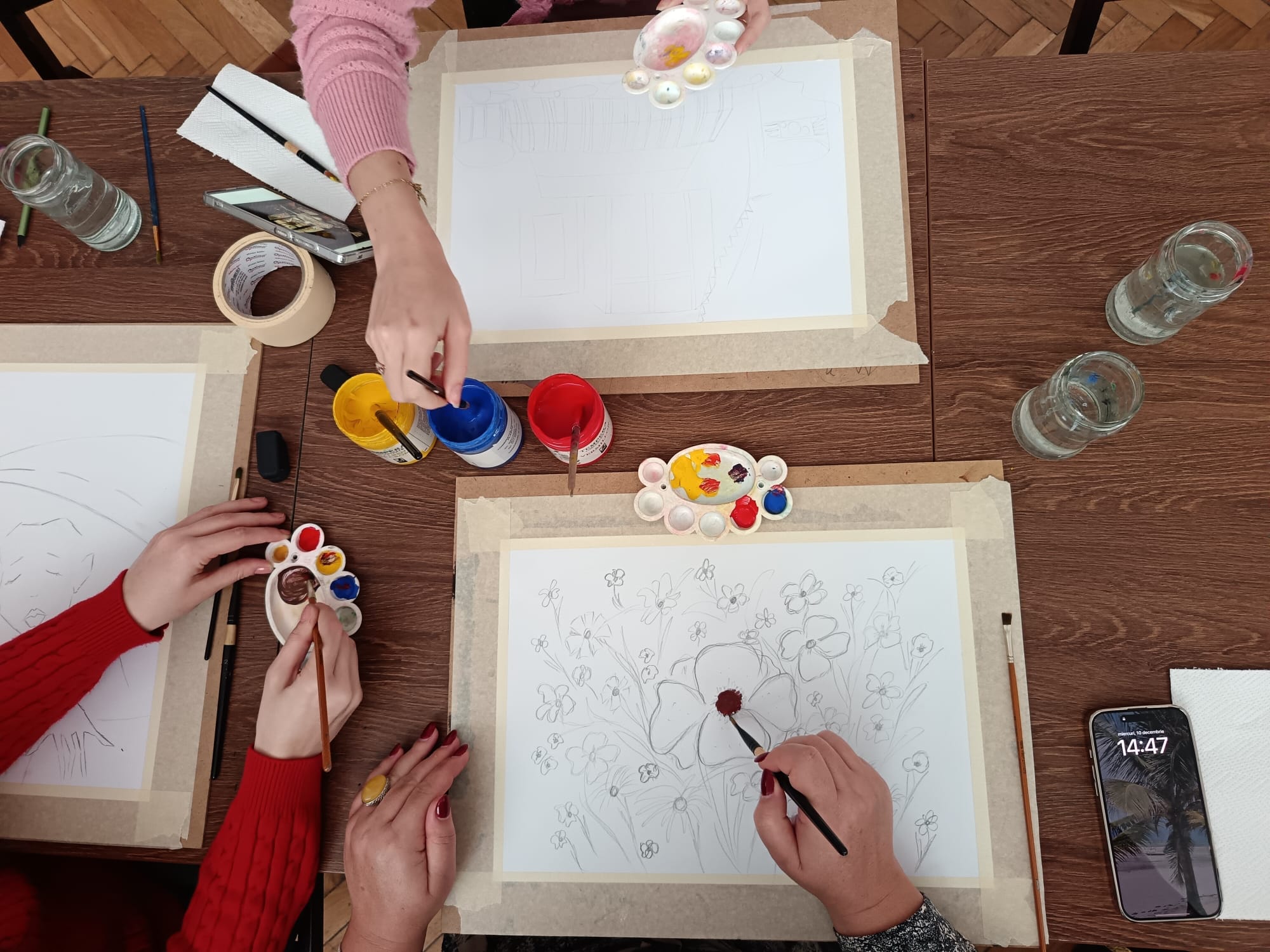 În cadrul atelierului, participanții au realizat propriile picturi, având ca punct de plecare culorile pure, contrastul cromatic și complementaritatea culorilor. Prin amestecuri atent alese, fiecare a descoperit magia culorilor și forța expresivă a contrastelor, transformând inspirația în creație personală.