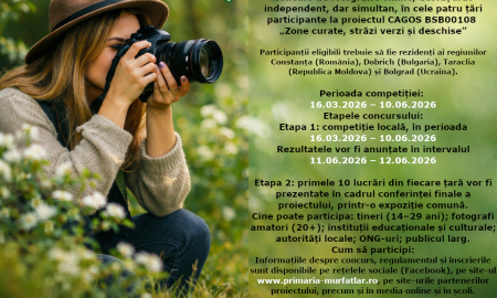 Primăria orașului Murfatlar organizează un concurs de fotografie online dedicat promovării mediului curat și a spațiilor urbane verzi, în cadrul proiectului internațional...