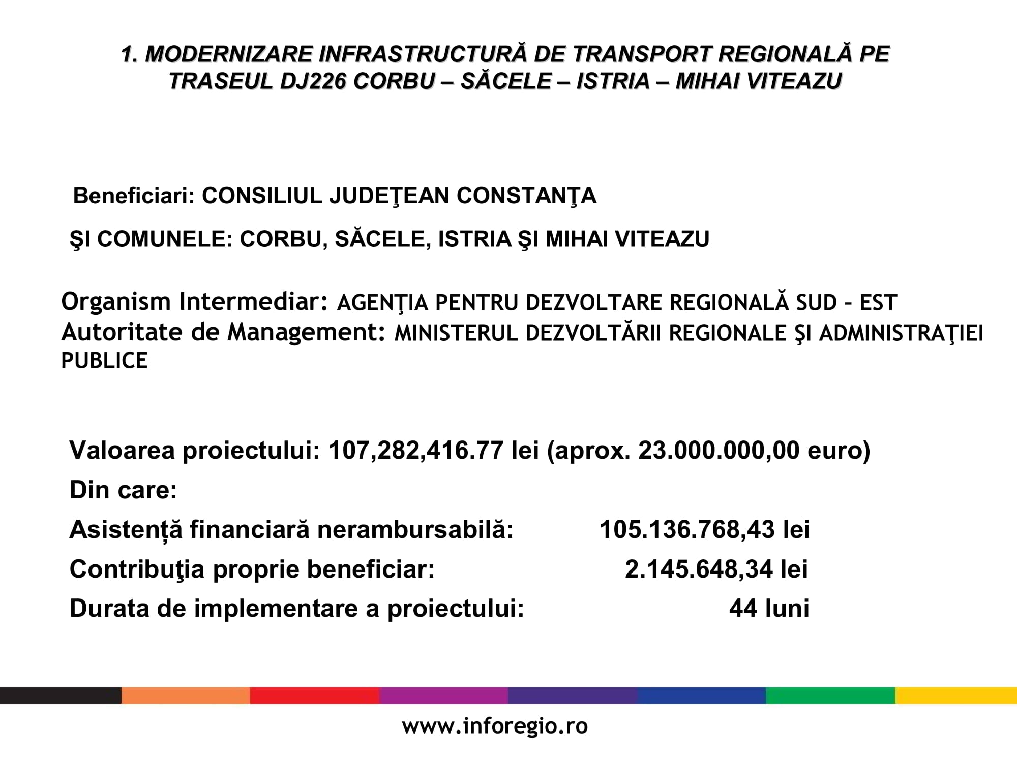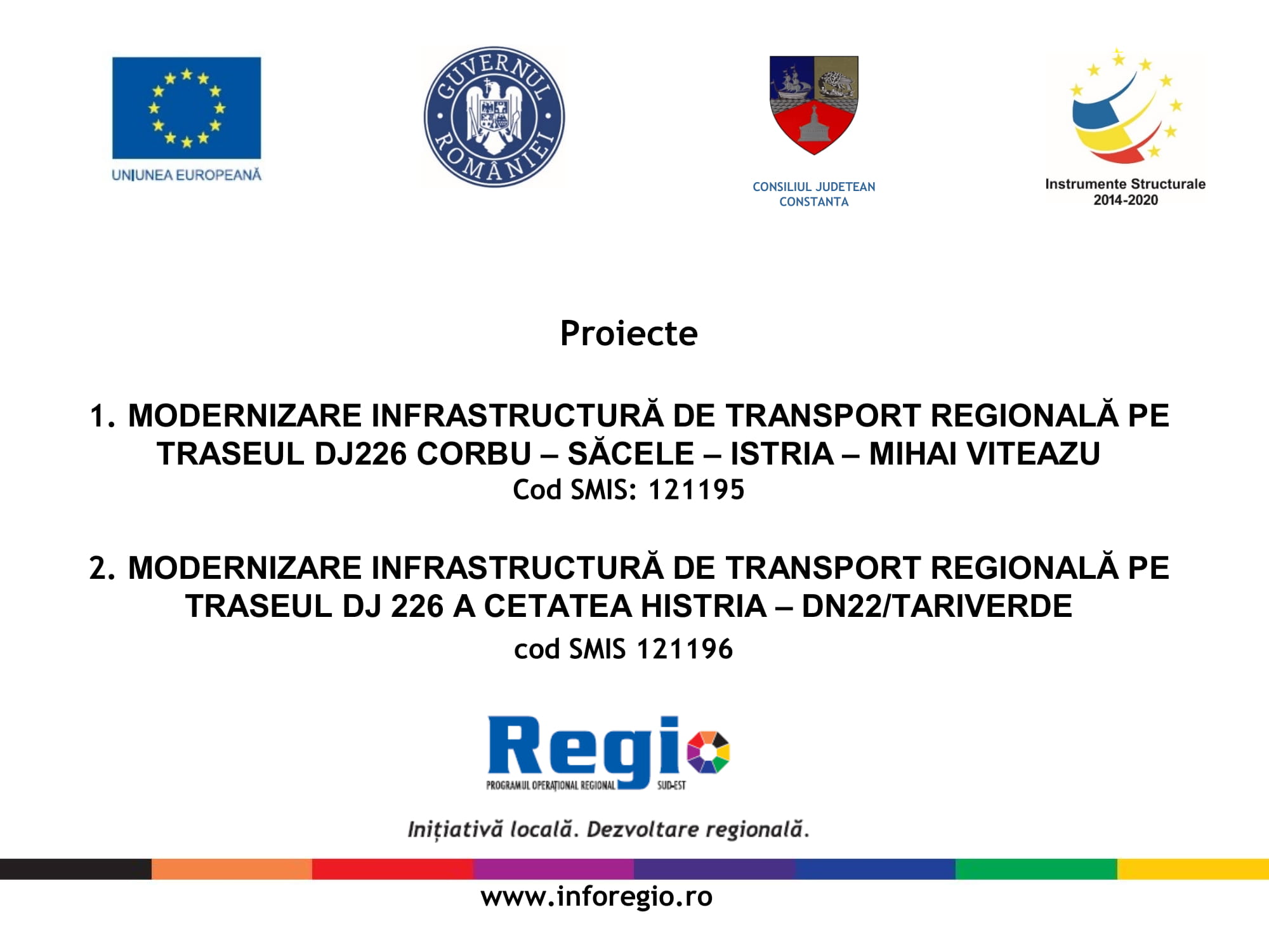 Președintele Consiliului Județean Constanța, Marius Horia Țuțuianu, împreună cu viceprim-ministru, ministrul Dezvoltării Regionale și Administrației Publice, Daniel Suciu, dar și cu secretarul de stat din cadrul Ministerului Dezvoltării Regionale și Administrației Publice, Adrian Gâdea, au semnat, pe 26 martie 2019, contractele de finanțare privind ”Modernizare Infrastructură de Transport Regională pe Traseul DJ 226 Corbu – Săcele – Istria — Mihai Viteazu”, ”Modernizare Infrastructură de Transport Regională pe Traseul DJ 226 A – Cetatea Histria – DN22/ Tariverde” și “Îmbunătățirea capacitătii administrative a Consiliului Județean Constanța”. Prin aceste proiecte, Consiliul Judeţean Constanţa urmăreşte creşterea siguranței rutiere, impulsionarea mobilităţii populației dar și a schimburilor comerciale.