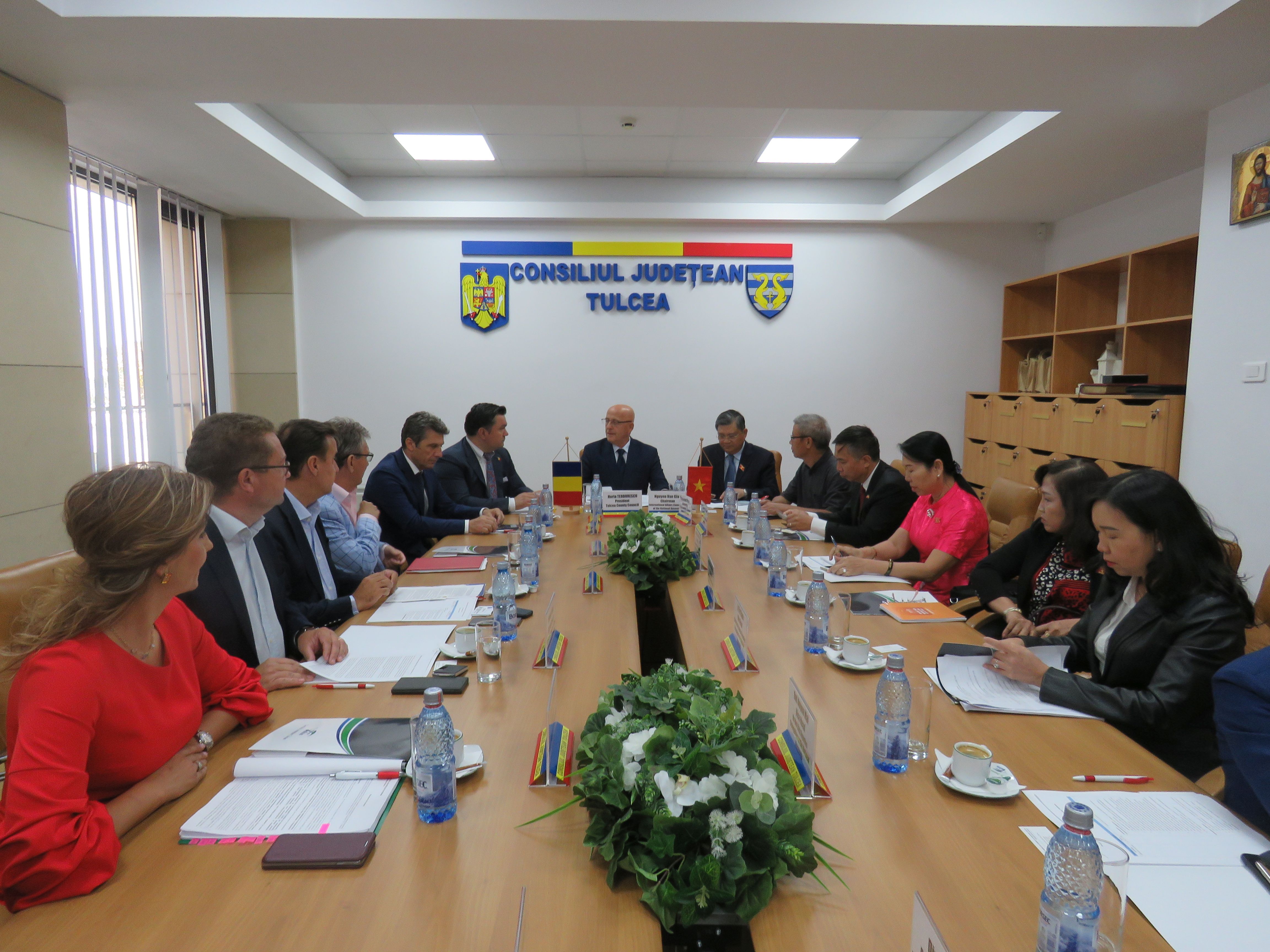 Președintele Consiliului Județean Tulcea, Horia Teodorescu, vicepreședinții Dumitru Mergeani și Petre Badea și administratorul public al județului, Vasile Strat, au primit vineri, 6 septembrie 2019, vizita unei delegații din Republica Vietnam condusă de Nguyen Van Giau, președintele Comisiei pentru politică externă din Adunarea Națională a Republicii Socialiste Vietnam, alături de Excelența Sa domnul Dang Tran Phong, Ambasadorul acestei țări în România.