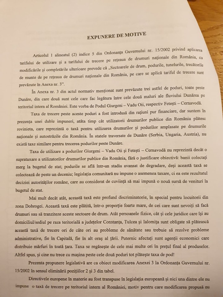 Reprezentanții PSD din Comisia de Transporturi și Infrastructură a Camerei Deputaților au respins propunerea Partidului Național Liberal pentru anularea taxei de pod plătită de către cei care trec Dunărea pe podurile de la Cernavodă-Fetești și Hârșova (Giurgeni)-Vadu Oii.
