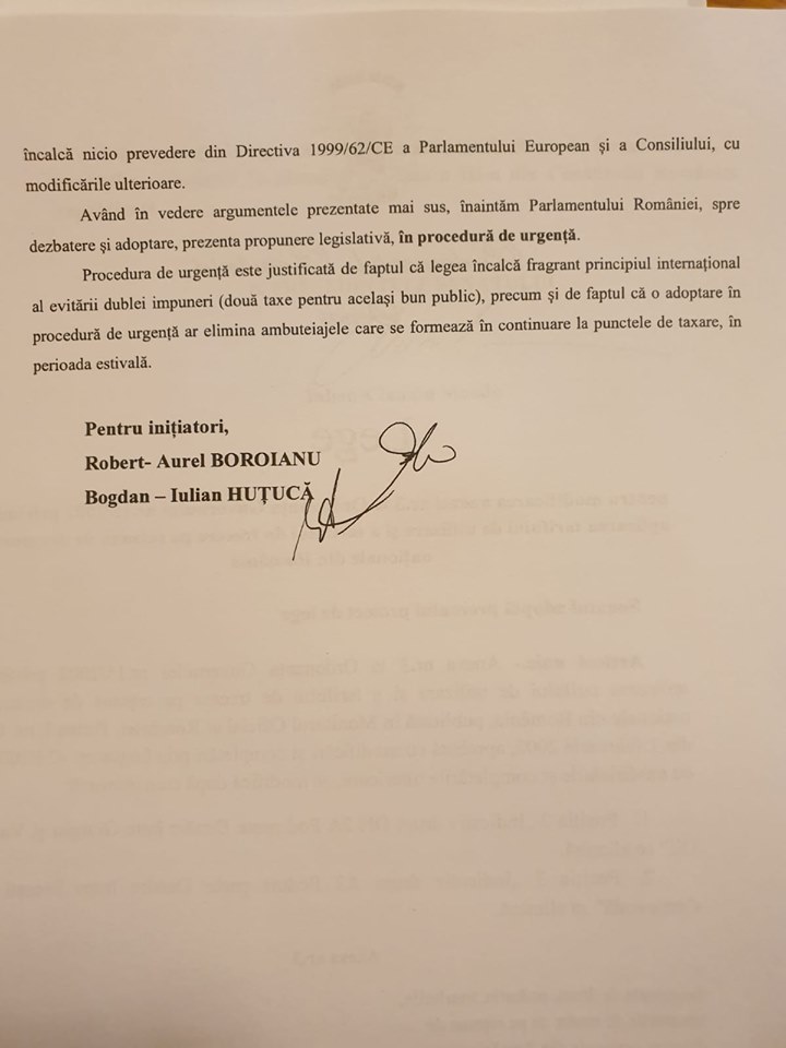 – este vorba de o dublă impunere, pentru că șoferii plătesc în prețul rovinietei taxe pentru administrarea drumurilor și podurilor