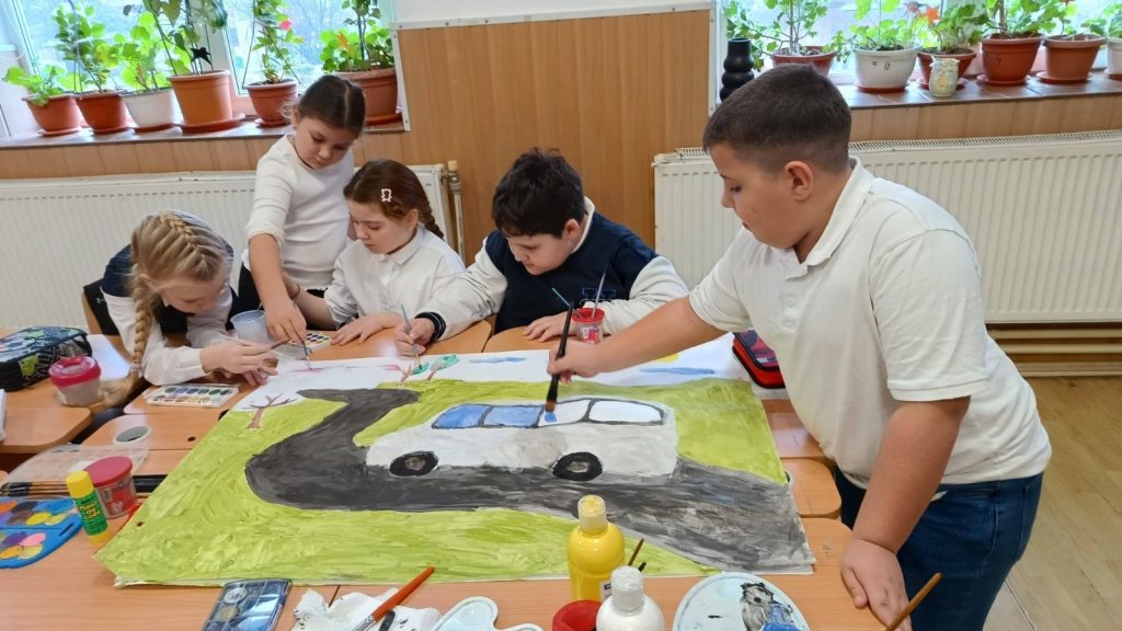 Copiii au fost atât de entuziasmați încât au așteptat microbuzul chiar și în ploaie, nerăbdători să îl vadă. După sosirea lui, au participat la diverse activități: au pictat microbuzul și și-au exprimat recunoștința într-un mod jucăuș și specific vârstei lor, transformând ziua într-un adevărat eveniment pentru școală.