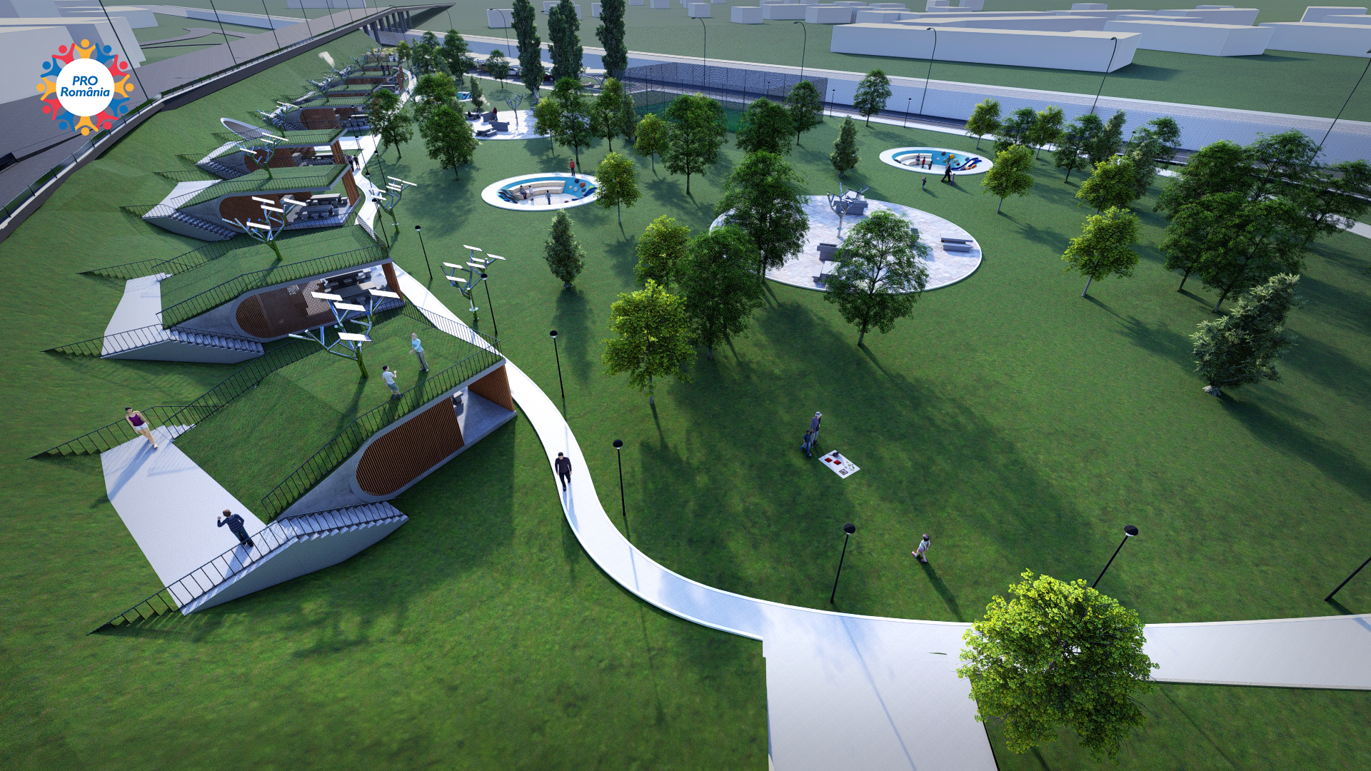 7. Realizarea unei parc pentru picnic și grătare – PARC “LA GRĂTARE” – amenajare spațiu verde și spațiu public pe o suprafață de 17 586mp. Vor fi prevazute locuri pentru picnic și grătare acoperite și neacoperite, grupuri sanitare, locuri de parcare, teren de sport, loc de joacă pentru copii, spații verzi.