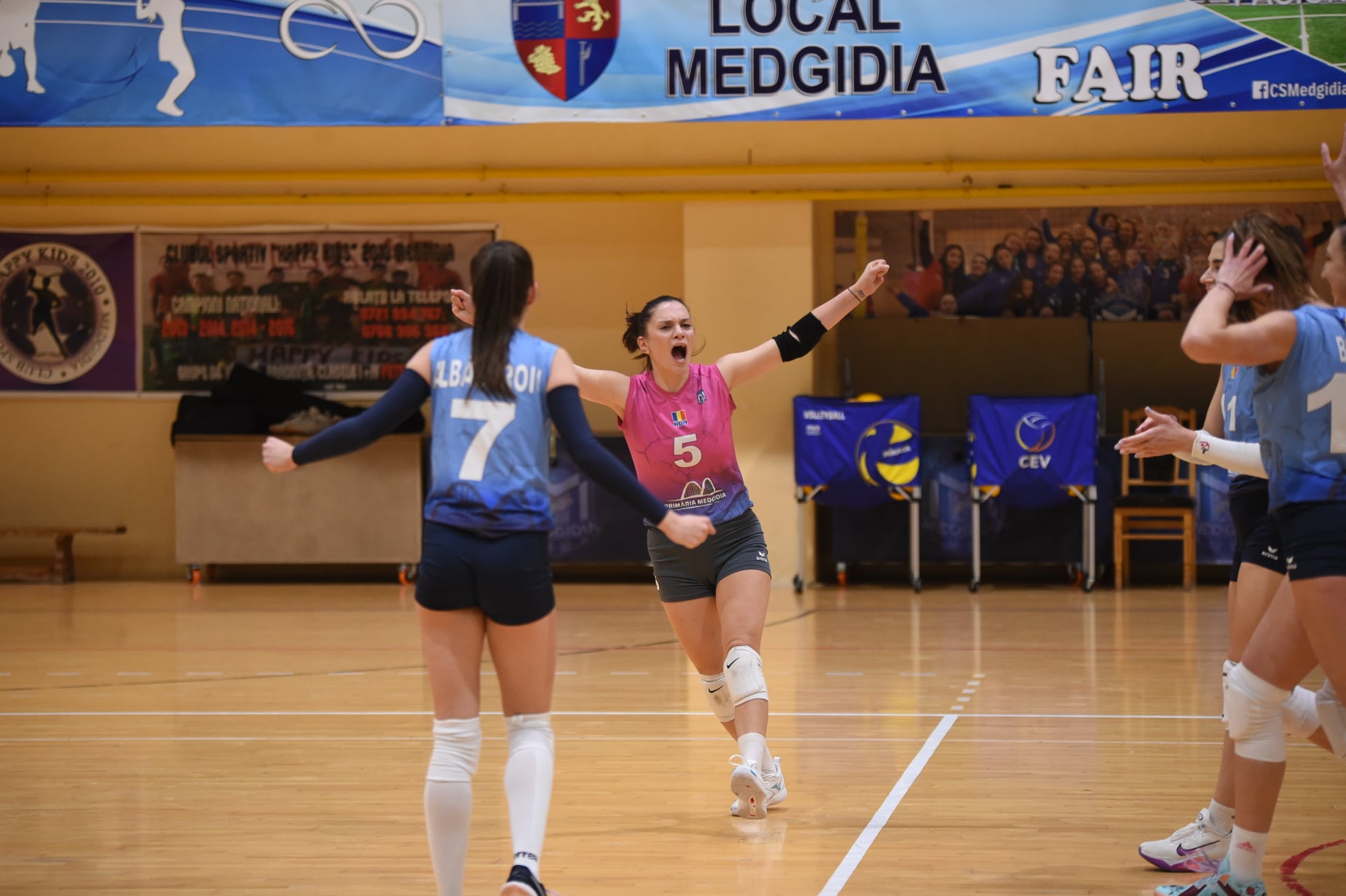 O victorie frumoasă reușită de fetele noastre, un cadou de Ziua Națională pentru toți suporterii noștri, care astăzi au fost din nou in sală, aproape de noi”, au transmis reprezentanţii Clubului Sportiv Medgidia.
