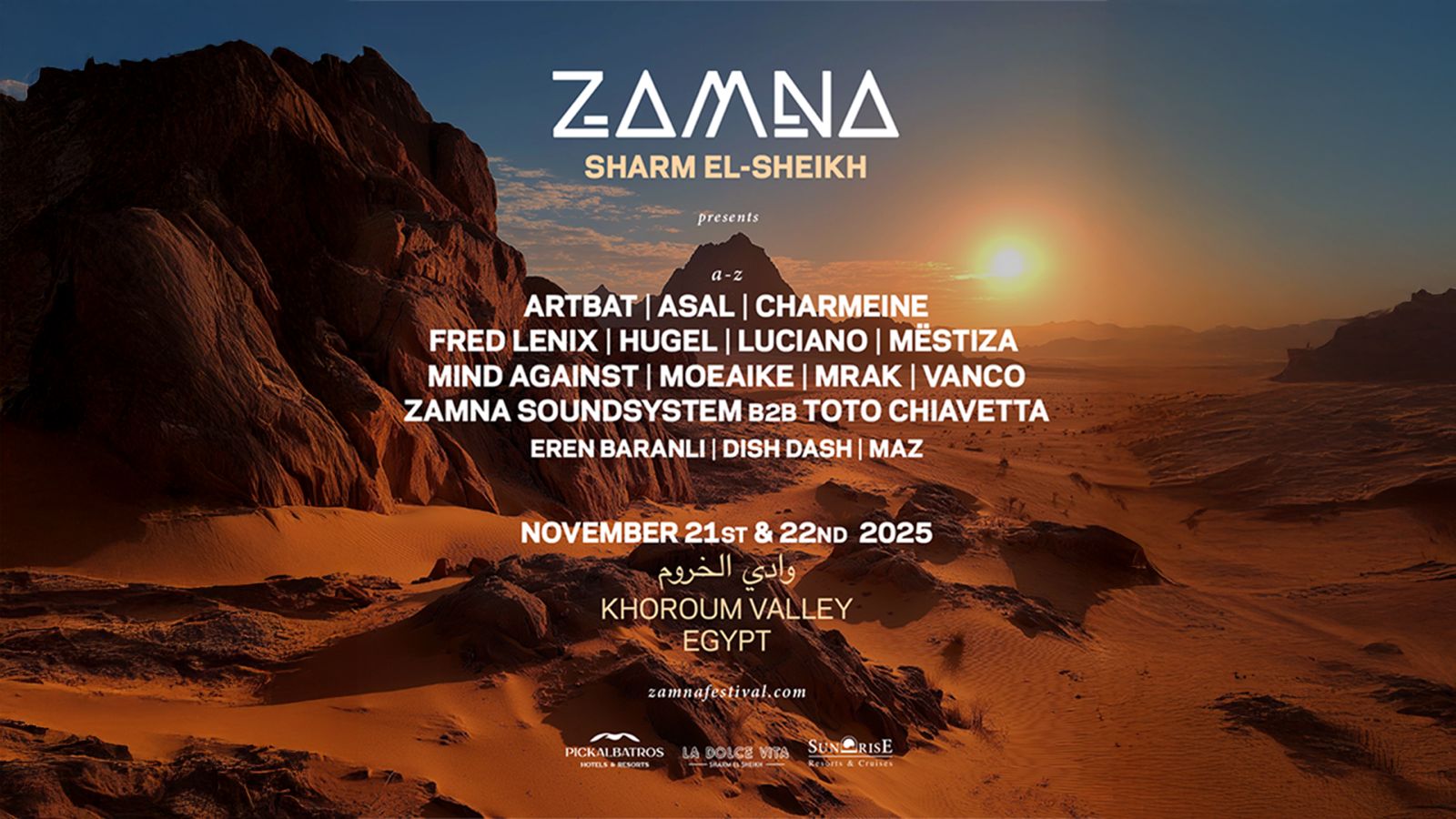 Zamna Sharm El Sheikh va avea loc pe 21 și 22 noiembrie 2025, în Khoroum Valley, una dintre cele mai spectaculoase locații din Sharm El Sheikh. Două nopți de muzică în care Egiptul devine parte din harta globală a festivalurilor Zamna.