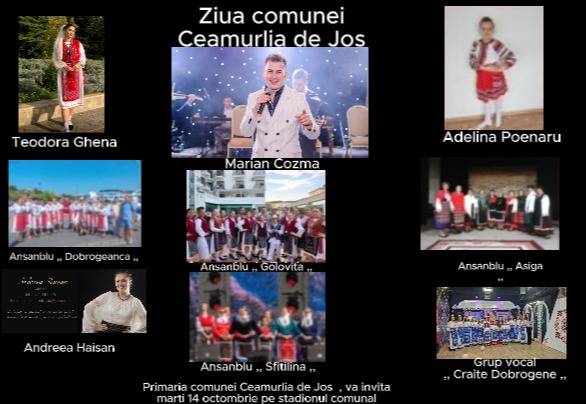 Comuna Ceamurlia de Jos, județul Tulcea, a fost pe 14 octombrie 2025, gazda unei sărbători de suflet: Ziua Comunei. Evenimentul a fost dedicat comunității, tradițiilor și valorilor culturale dobrogene. Manifestarea s-a desfășurat pe stadionul comunal, începând cu ora 16:00, reunind locuitori din toate satele aparținătoare, precum și numeroși invitați din localitățile vecine.