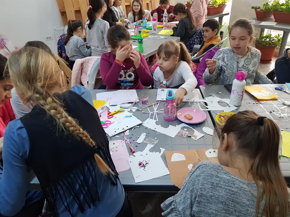 În acelaşi timp au fost prezenţi la Centrul Pentru Tineret Ion Creanga şi copii din comunitate, care au confecţionat în sala de artă mărţişoare şi felicitări pentru 8 martie.
